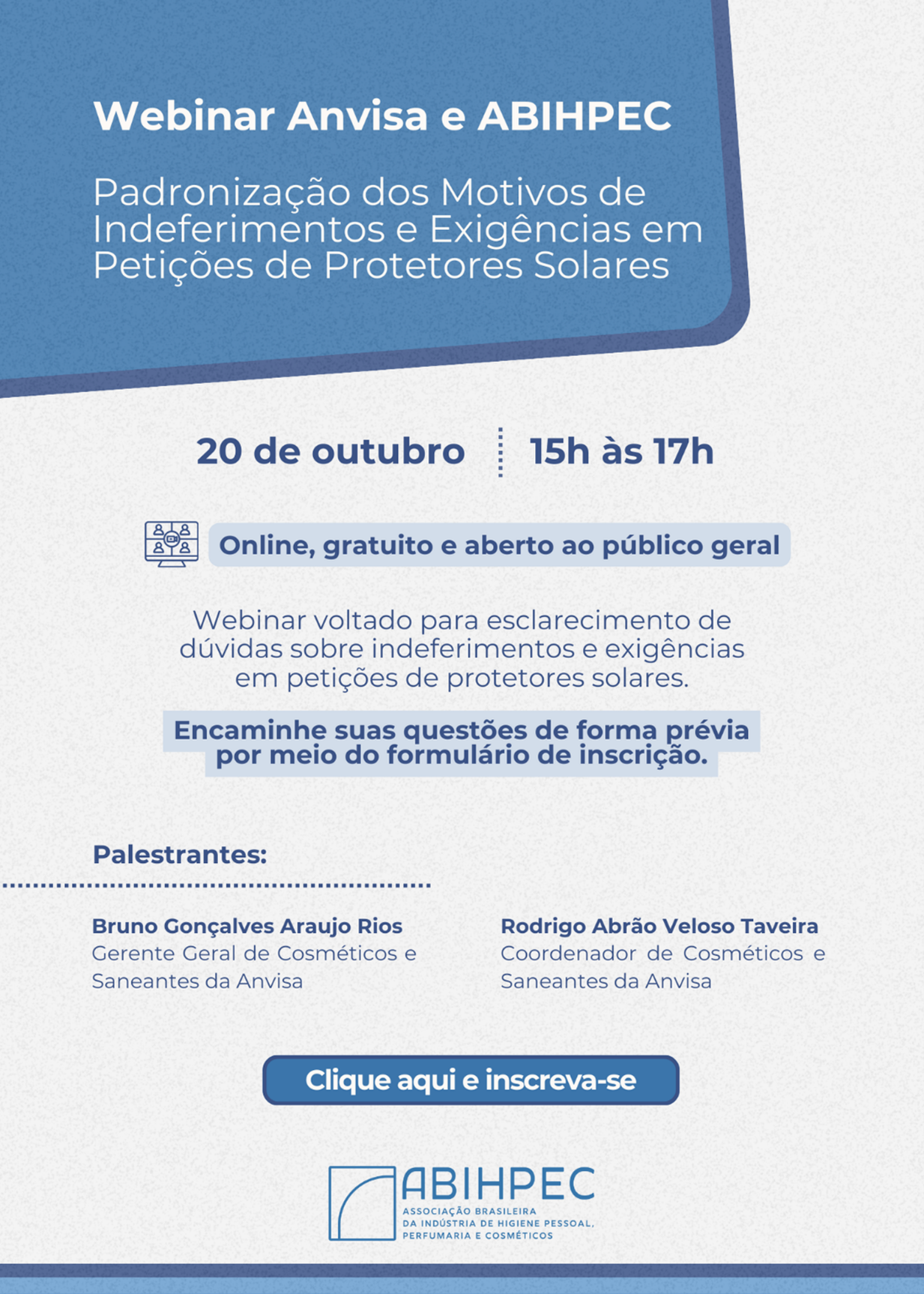 Webinar Anvisa e ABIHPEC: Padronização dos Motivos de Indeferimentos e Exigências em Petições de Protetores Solares